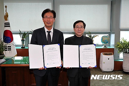 【울산=뉴시스】조현철 기자 = 31일 오전 울산시청에서 오규택 울산시 경제부시장과 이세영 린노알미늄(주) 대표이사가 공장 증축 및 설비 증설 투자양해각서(MOU)를 체결하고 있다. 2017.03.31. (사진=울산시 제공) photo@newsis.com