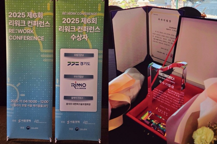린노알미늄은 ‘2025 중소기업융합대전’에서 협업과 혁신의 모범사례로 소개된 데 이어, ‘제6회 리워크 컨퍼런스’에서 ‘우수기업상’을 수상했다.